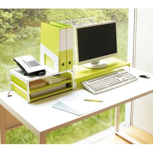 デスクの上をすっきり整理。机上台を使えば有効スペースがアップします。 |