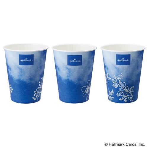 紙コップの向きがわかるように箱デザインをリニューアル!紙コップの口に触れにくいので衛生的に取り出せます。グリーティングカードで有名なホールマーク社の柄紙コップ。自然なモチーフが爽やかなデザイン |