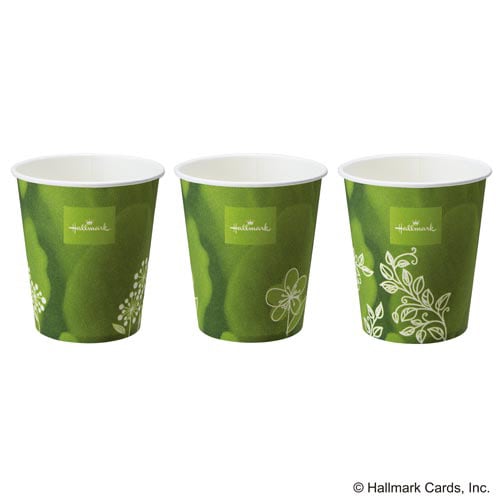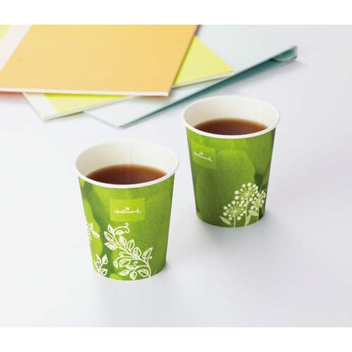 紙コップの向きがわかるように箱デザインをリニューアル!紙コップの口に触れにくいので衛生的に取り出せます。グリーティングカードで有名なホールマーク社の柄紙コップ。自然なモチーフが爽やかなデザイン |