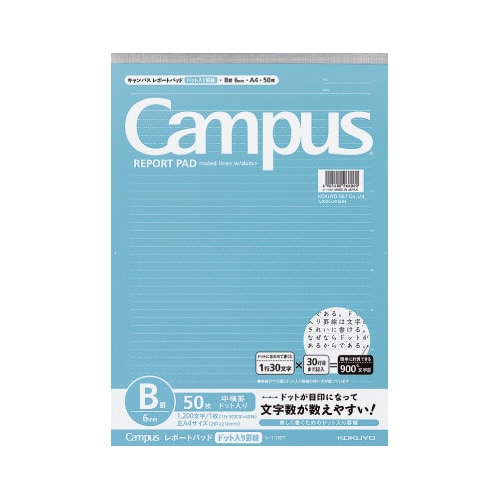 キャンパスレポート箋(ドット入罫線)A4B罫50枚 B罫 1冊 レ−110BT レポート用紙
