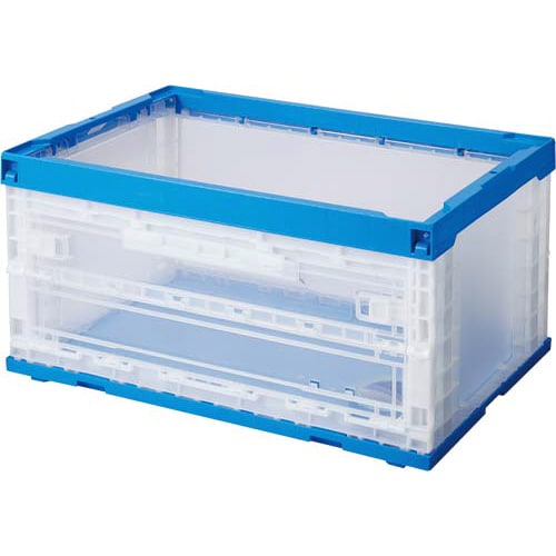扉付きオリコン 75L フタなし ブルー透明 幅649x奥行439x高さ327mm フタなし 1個 オリコン P75B−S扉L 折りたたみコンテナ
