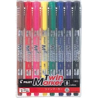 油性マーカー ツインマーカー 細・極細 8色セット インク色黒、赤、青、緑、黄、ピンク、茶、バイオレット 1パック(8本入) MEF−96EU−8C 油性マーカー(ツイン)