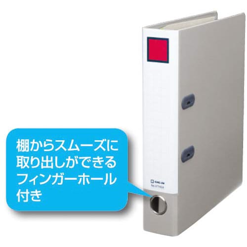 書類の端がそろうレバータイプのDリングファイル。棚からスムーズに取り出しができるフィンガーホール付き。貼り表紙タイプはこちら。 |
