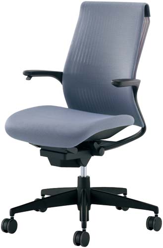 会議室でも使えるブラックシェルタイプ。ハイバックのスリットループデザインで通気性抜群のコクヨ製チェア。こちらの商品はポリウレタン巻きキャスターです。 |