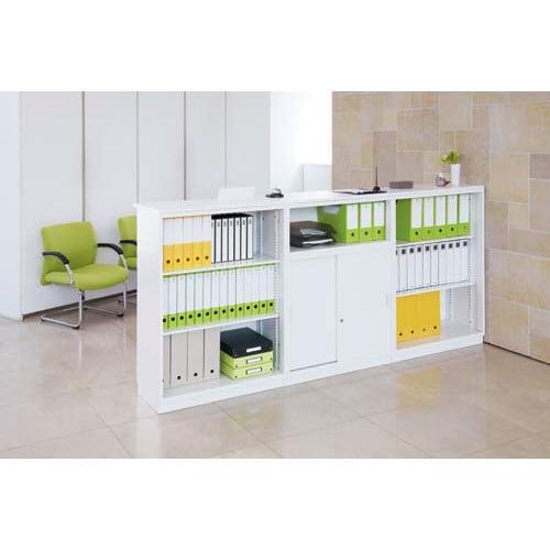 アッセスチール収納庫 幅800×奥行400×高さ320mm 上置き オープン 1段 配線穴なし 本体:ホワイト 1台