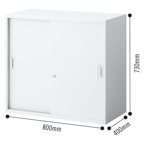 アッセスチール収納庫 幅800×奥行400×高さ730mm 上置き 引き違い 2段 配線穴なし 本体:ホワイト、扉:ホワイト 1台