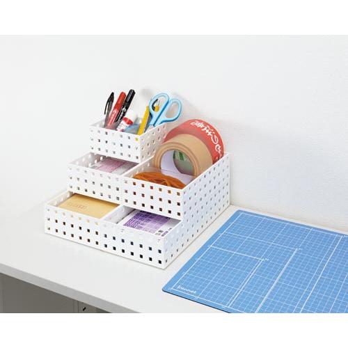 スタッキングできて細々した備品の整理に大活躍!裏面にはスベリ止めの足ゴム付き! |