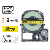 SC9YE「テプラ」PROテープカートリッジ TEPRAキレイにはがせるラベル 黄・黒文字9mm幅8m巻 SC9YE テプラ(キングジム)用 機能性ラベルテープ/シール 1個
