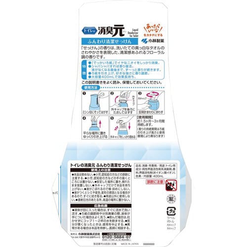 トイレの消臭元 ふんわり清潔せっけん 400ml トイレ用置き型 1個 029657 トイレ用消臭剤 芳香剤