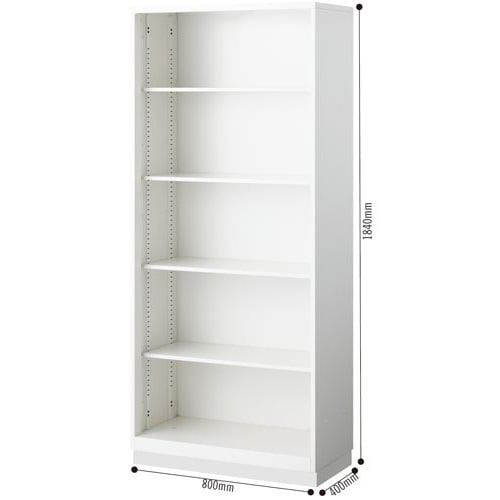 アッセスチール収納庫 幅800×奥行400×高さ1840mm 下置き オープン 5段 配線穴なし 本体:ホワイト、ベース:ホワイト 1台