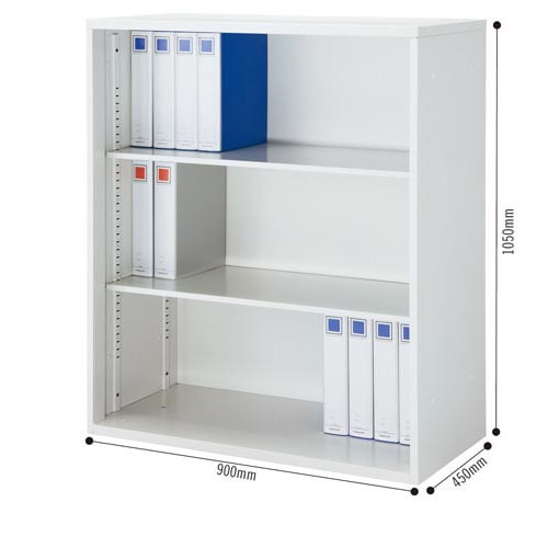 アッセスチール収納庫 幅900×奥行450×高さ1050mm 上置き オープン 3段 配線穴なし 本体:ホワイト 1台