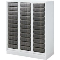 アッセスチール収納庫 幅900×奥行450×高さ1110mm 下置き トレー(深型) 11段 配線穴なし 本体:ホワイト、ベース:ブラック 1台