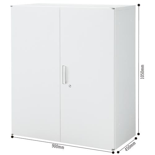 アッセスチール収納庫 幅900×奥行450×高さ1050mm 上置き 両開き 3段 配線穴なし 本体:ホワイト、扉:ホワイト 1台
