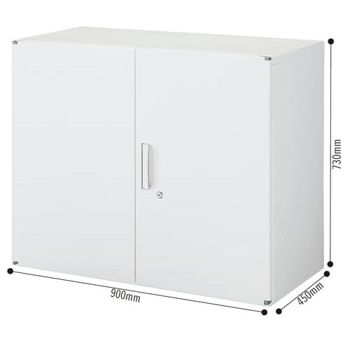 アッセスチール収納庫 幅900×奥行450×高さ730mm 上置き 両開き 2段 配線穴なし 本体:ホワイト、扉:ホワイト 1台