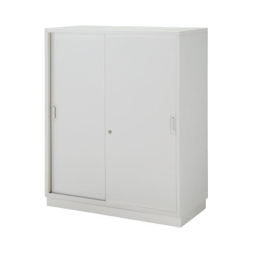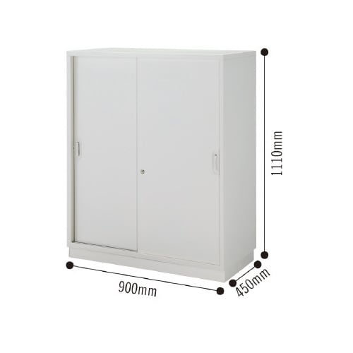 アッセスチール収納庫 幅900×奥行450×高さ1110mm 下置き 引き違い 3段 配線穴なし 本体:ホワイト、扉:ホワイト、ベース:ホワイト 1台