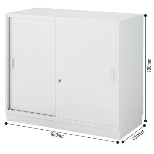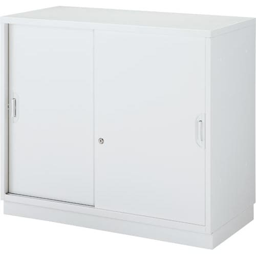 アッセスチール収納庫 幅900×奥行450×高さ790mm 下置き 引き違い 2段 配線穴なし 本体:ホワイト、扉:ホワイト、ベース:ホワイト 1台