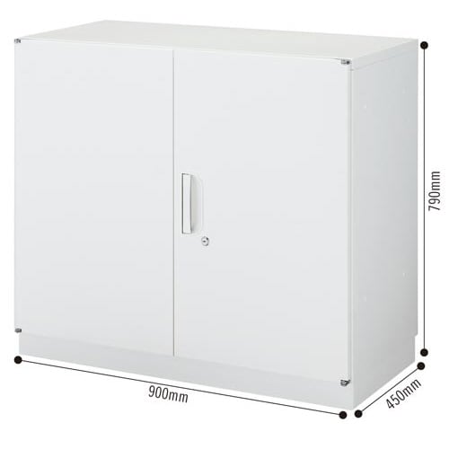 アッセスチール収納庫 幅900×奥行450×高さ790mm 下置き 両開き 2段 配線穴なし 本体:ホワイト、扉:ホワイト、ベース:ホワイト 1台