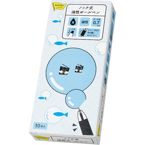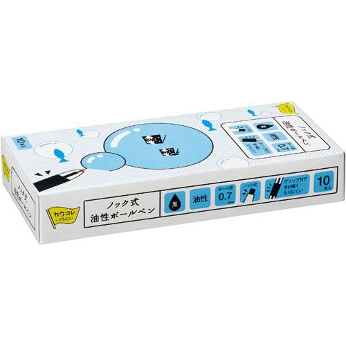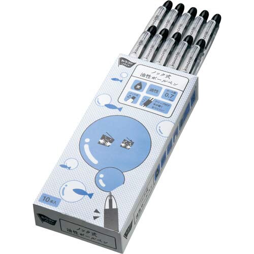 ノック式油性ボールペン 0.7mm グリップ付き 黒 ブラック 10本
