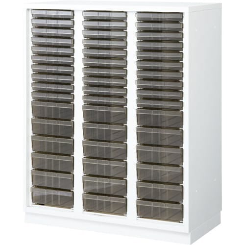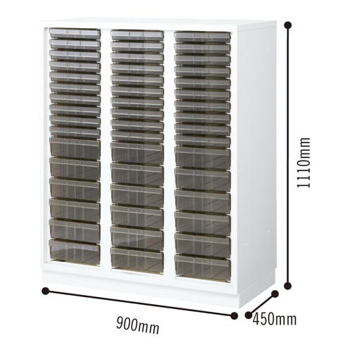 アッセスチール収納庫 幅900×奥行450×高さ1110mm 下置き トレー(浅深型) 16段 配線穴なし 本体:ホワイト、ベース:ホワイト 1台