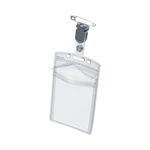 タッグ名札防水ケース タテ型 強力イタメンクリップ 縦 1枚 ナフ−161 クリップ付名札
