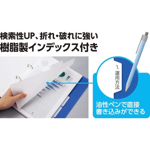 20色のカラーバリエーション、インデックス標準装備したリングファイル。マニュアルはこれで管理! |