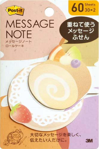 ポストイット メッセージノート ロールケーキ×10 69×69mmよりカットアウト 1箱(2冊入×10) MES−RC×10 デザインふせん