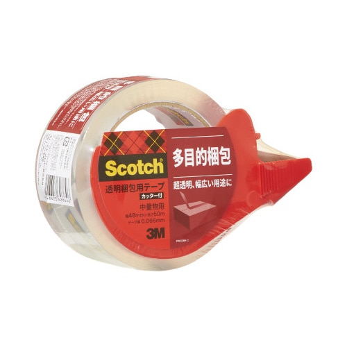 スコッチ(R)透明梱包用テープ中軽量物用カッター付 幅48mm×50m カッター付き 1巻 313D1PN