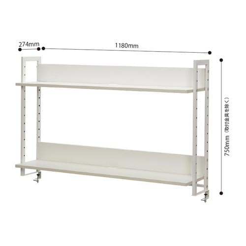 ワーキングデスク上置棚2段幅1200用ホワイト