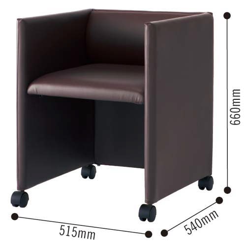 コンパクト応接会議チェア ダークブラウン 張り地PVCレザー/中身ウレタン・スチール・木質ボード/キャスターナイロン 組立てサービス付き 応接室 1脚 RFC−FPRPDB