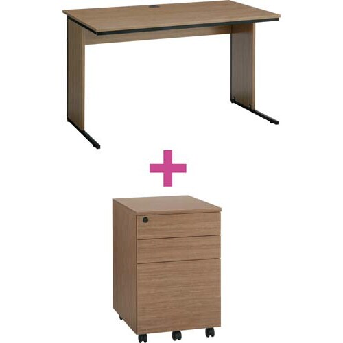 木製デスク・ワーキングデスクの平机(4238−4786)と3段ワゴン(4238−5387)のお得なセット。 |