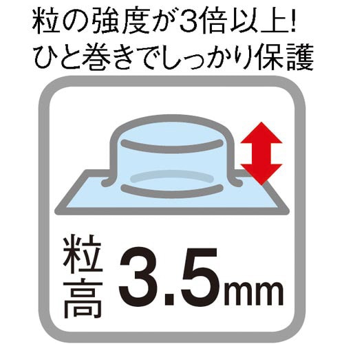 高強度タイプで、通常2・3重で巻いていた梱包物が1巻きで済みます。さらにタテ・ヨコそれぞれにミシン目付きで、どこからでも包むものに合わせて好きなサイズに切り分けられるエアークッションです。 |