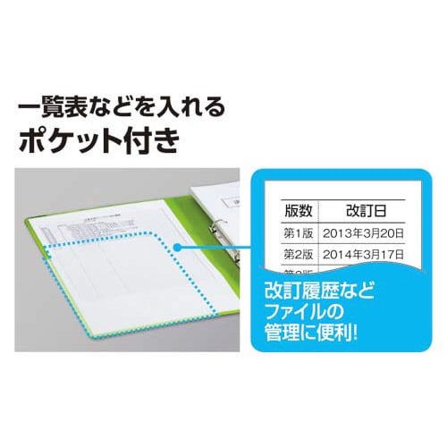 20色のカラーバリエーション、インデックス標準装備のリングファイル。マニュアルはこれで管理! |