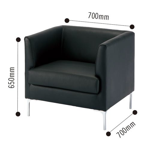 ラルジュ本革応接ソファ 1人掛 ブラック 幅700×奥行700×高さ650mm 組立てサービス付き 応接室 1台 OKS−1P