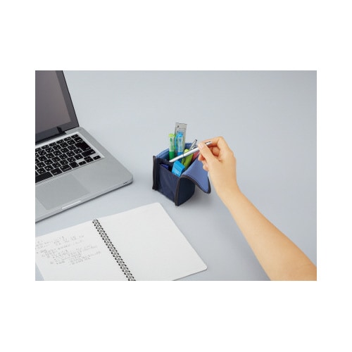 ペンケースがペンスタンドに早変わり!立てて使えて、省スペース!中が見やすい&探しやすい!ペン約15本収容可能です。 |