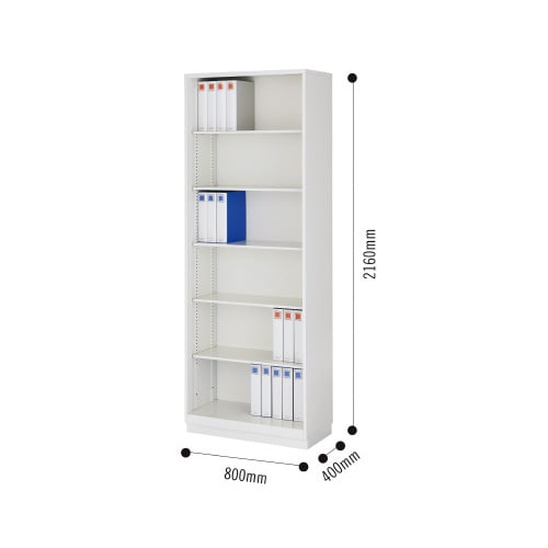 アッセスチール収納庫 幅800×奥行400×高さ2160mm 下置き オープン 6段 配線穴なし 本体:ホワイト、ベース:ホワイト 1台