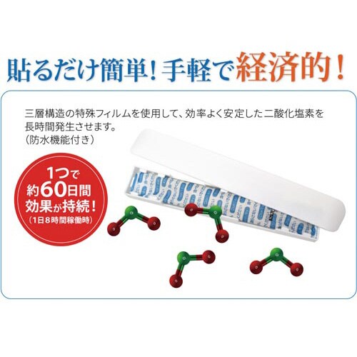 エアコンにワンタッチ!二酸化塩素の力でウイルス・浮遊菌を分解・抑制!なんとウイルス減少率99%!更に消臭効果も兼ねた画期的商品。 |