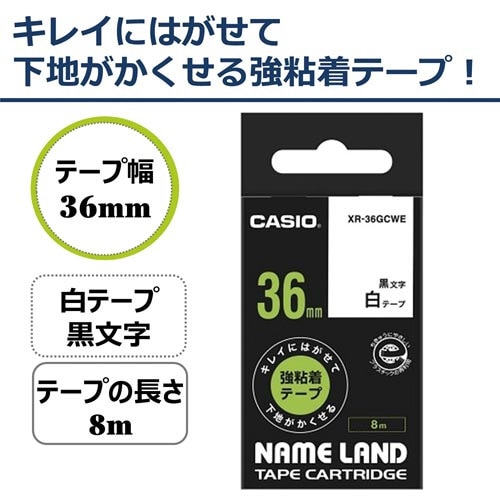 ネームランド はがせる強粘着テープ白36mm黒文字 8m 1個 XR−36GCWE ネームランド(カシオ)用 機能性ラベルテープ