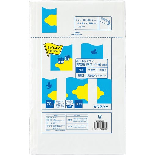 取り出しやすい高密度厚口ゴミ袋(シャカシャカタイプ) 70L 半透明 詰替用 120枚×3パック 業務用