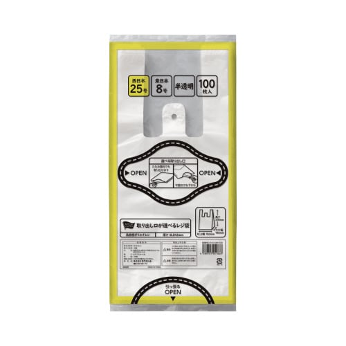 取り出し口が選べるレジ袋 半透明25号 100枚