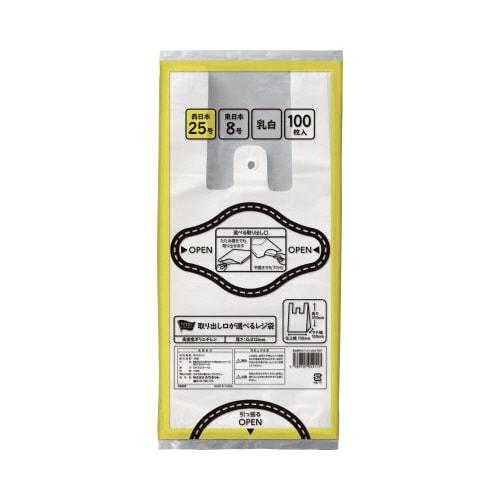 取り出し口が選べるレジ袋 乳白25号 100枚