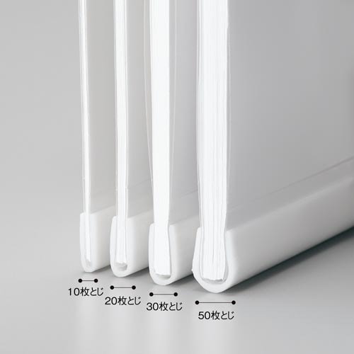 書類の上下中央に合わせるためのインジケーター付き。レールがスリムになったから、保管時に重ねてもかさばらない!名刺サイズのスリット付きだから、会社案内に使いやすい! |