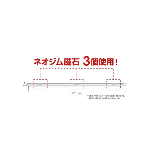 マグネットスリムバーロング 白 長さ310×幅6×厚さ7mm MSLB−310−3P−W マグネットバー