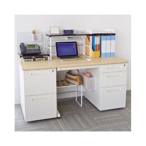 机上でも机下でも活躍する便利なサイズの机上台。デスク下に置けばバッグ・靴などが収納できます。