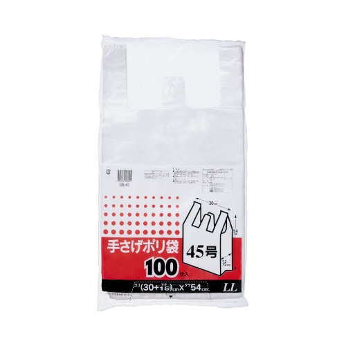 厚口手さげポリ袋45号厚み0.02半透明 LL 45号 1パック(100枚入) SB−45 手提げ袋(ポリエチレン)