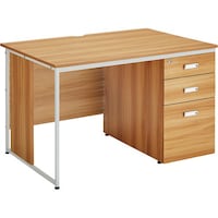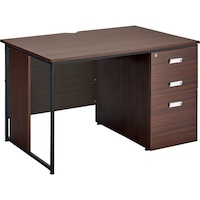 カウネットオリジナルの木製デスク。オプション引き出しや足元棚など多彩な収納が魅力で木目がポイント。 |