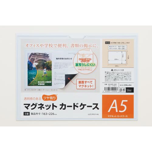 マグネットカードケース ツヤ有りA5 透明(表面ツヤ有り) ソフトタイプ MCARD−A5G 1枚