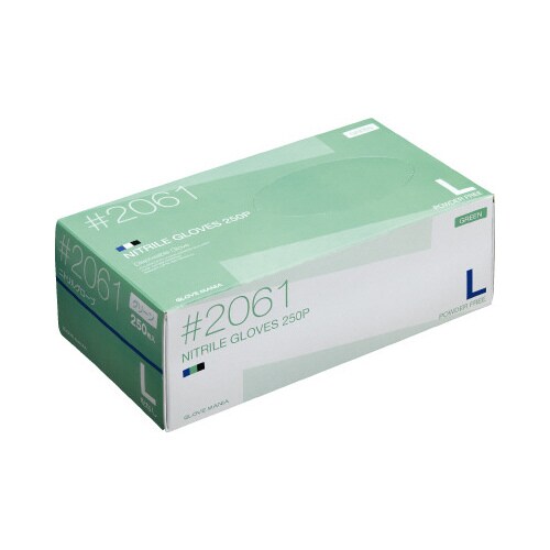 ニトリル使いきり手袋 粉無 グリーンL 250枚入 粉無 2061G−L 使い捨て手袋(ニトリル)
