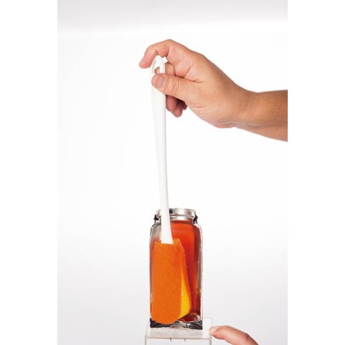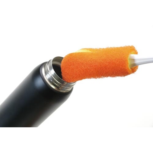 ステンレスボトルなどを洗うのに便利な柄付きたわしです。三日月型のハイブリッド3層貼り合わせスポンジが、底の隅にフィットし茶渋や着色汚れを落とします。スポンジが交換可能なので衛生的かつ経済的です。 |