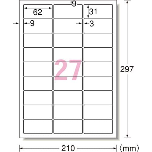 超耐水 紙ラベル IJP A4 27面 白 超耐水マット紙 1冊(20枚入) 62227 ラベルシール ラベル用紙(耐水紙ラベル)