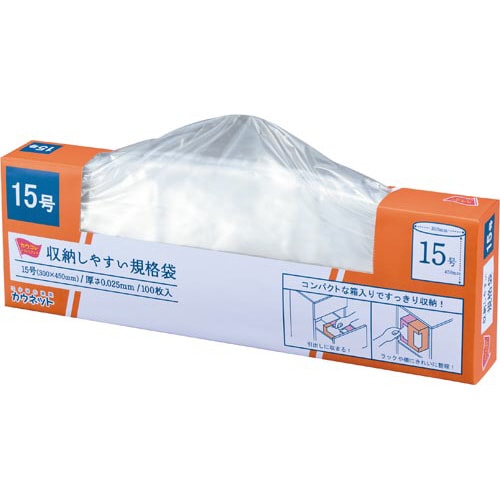 箱寸法の幅と高さがぴったりそろってすっきり収まる。ボックス入りの破れにくい透明タイプの規格袋です。 |